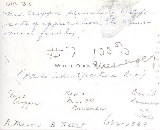 Photograph of Eloise Cropper, Rev. and Mrs. William Kunsman, and David Kunsman, 1977Entry/Object ID