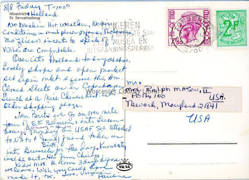 Correspondence, Postcard from Pauline to Joanne Mason, 1975