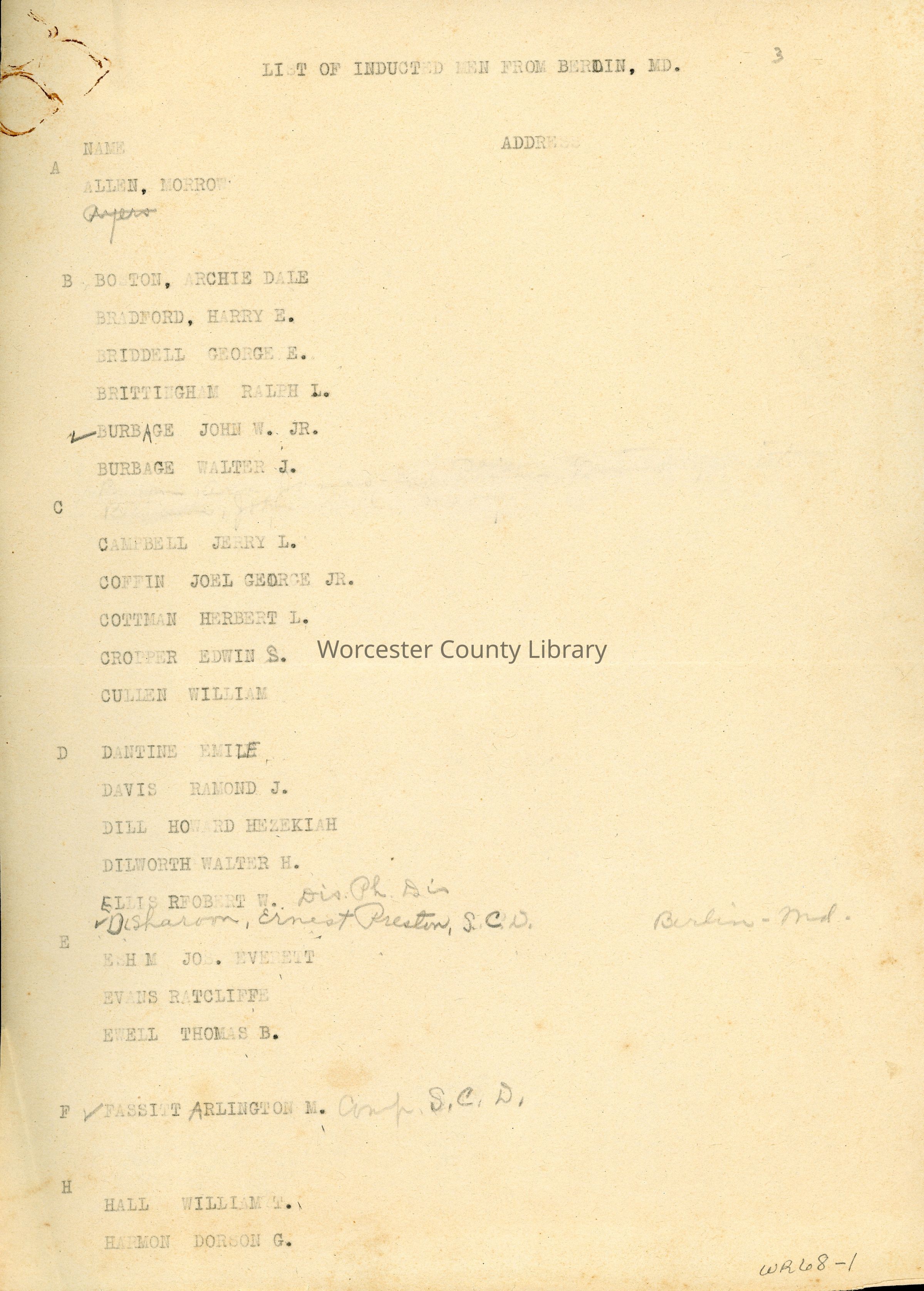 List of Inducted Men from Berlin, MD, World War IEntry/Object ID