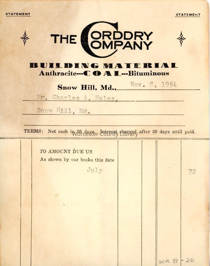 Statement, The Corddry Company, Nov. 1954Entry/Object ID