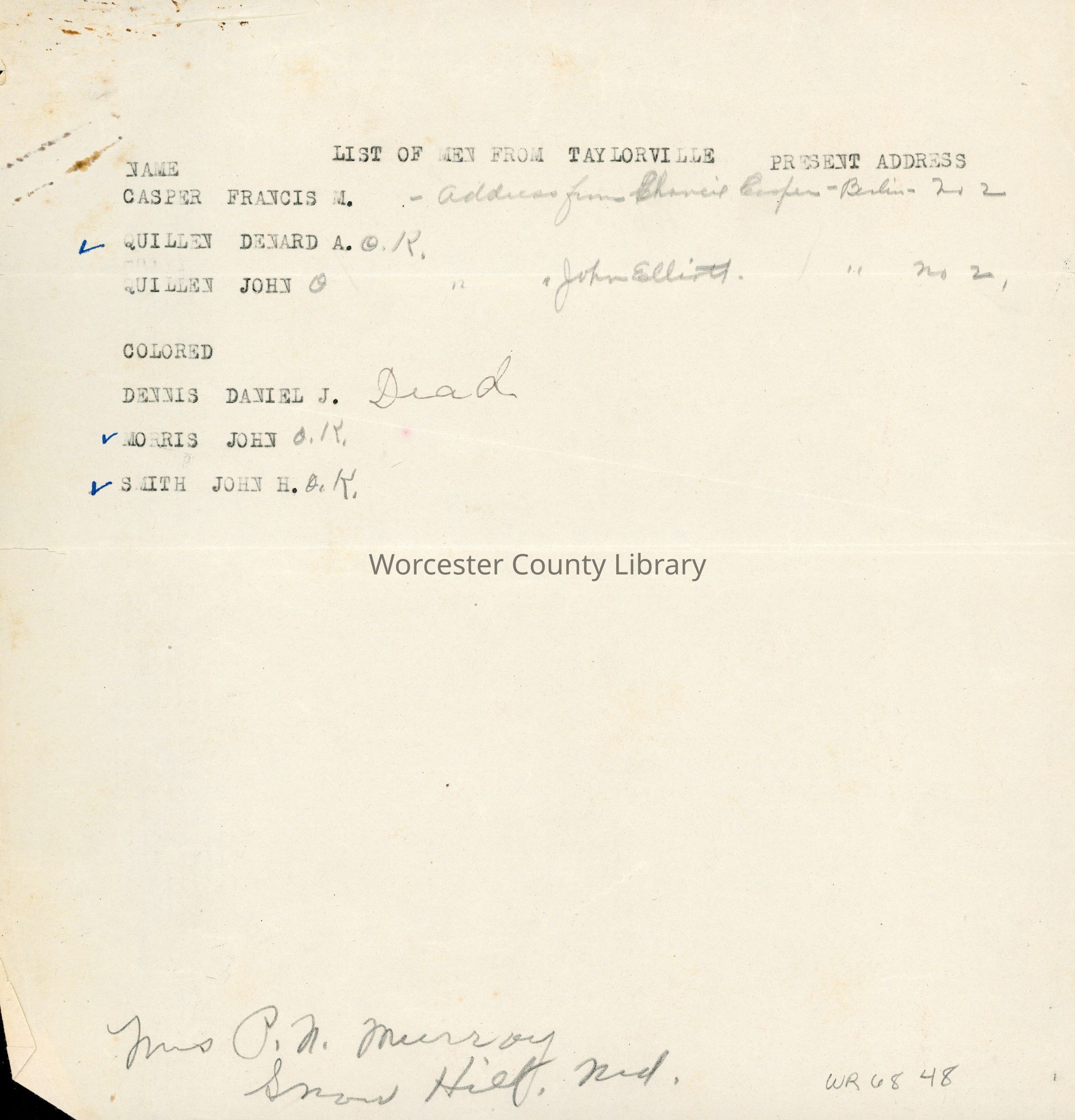 List of Men from Taylorville, World War IEntry/Object ID