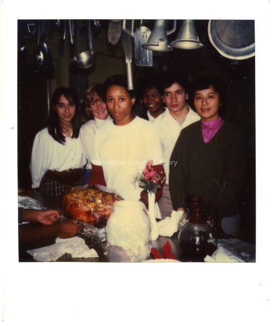 Photograph of Bixiti Chai, Nelson Hincatie, Leslie Murray, Rita Barchetti, Jackie Baine, and unknown person at Worcester Co. Board of Education, Jan 1984Entry/Object ID