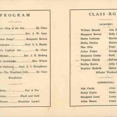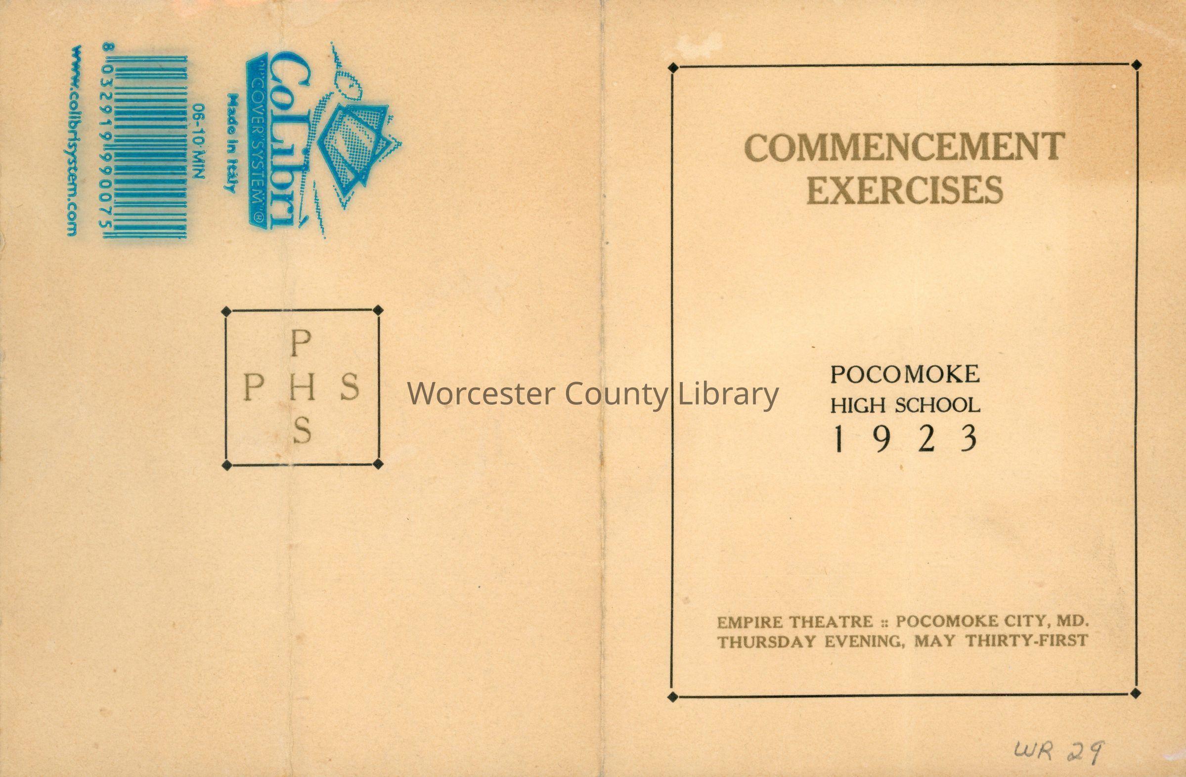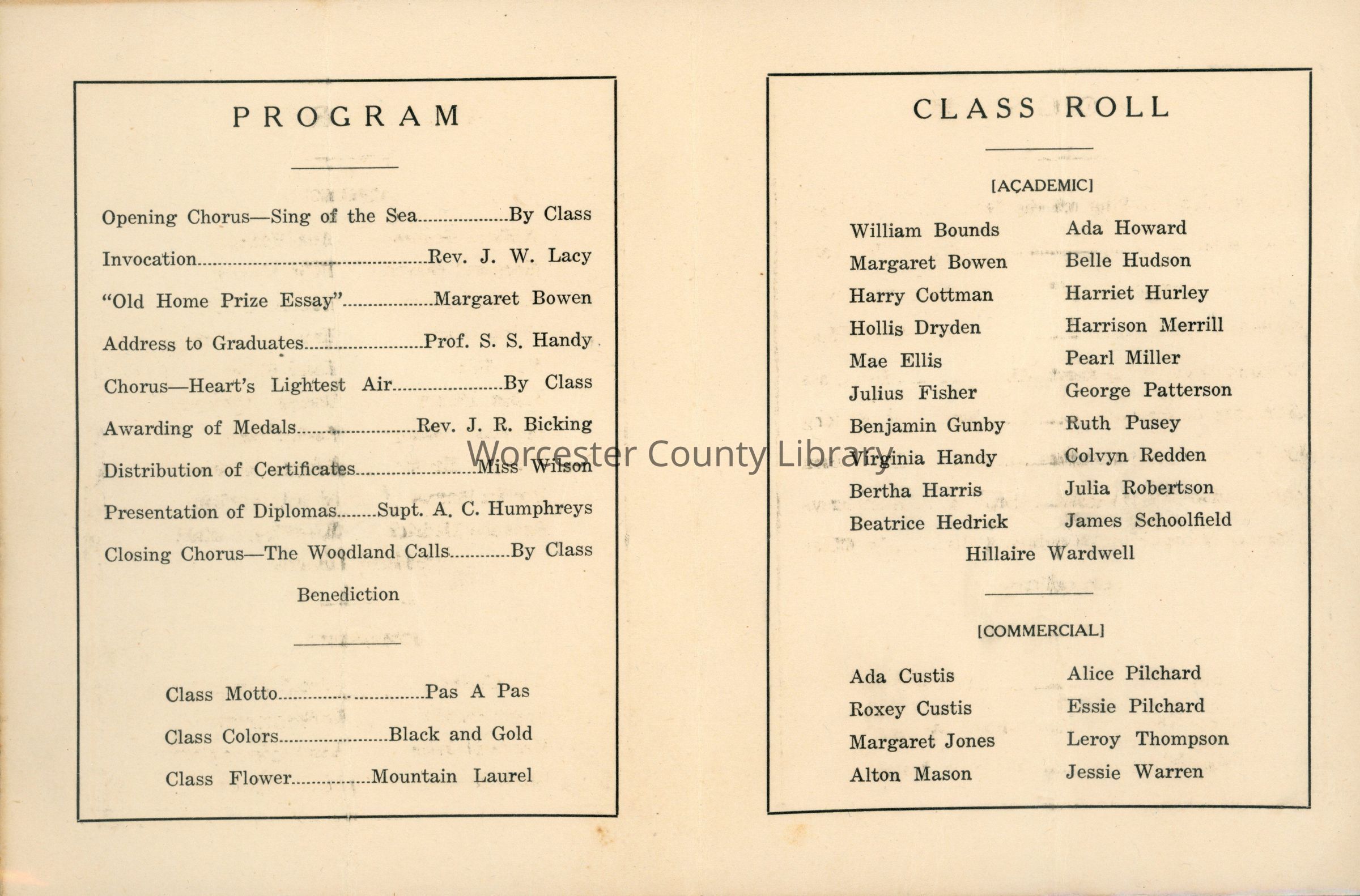 Pocomoke High School, Empire Theatre, Rev. J. W. Lacy, Margaret Roberta Bowen, Prof. S. S. Handy, J. R. Bicking, Arthur Carroll Humphreys, Sr., William E. Bounds, Harry Thomas Cottman, Hollis James Dryden, Nellie Mae Ellis, Julius Wilbur Fisher, Paul Benjamin Gunby, Mary Virginia Handy, Bertha Florence Harris, Frances Beatrice Hedrick, Ada Mae Howard Holland, Venia Belle Hudson, Harriet Louise Hurley Green, Isaac Harrison Merrill, Pearl Rebecca Miller, George Finley Patterson, Ruth Ellen Pusey, Colvyn C. Redden, Julia Bacon Robertson, Samuel James Schoolfield, Jr., Hillaire Powell Wardwell, Mary Ada Custis, Roxey Hinman Custis, Ella Margaret Jones, Alton Francis Mason, Alice Lee Pilchard, Essie Frances Pilchard, Leroy Stephen Thompson, Jessie Pearl Warren