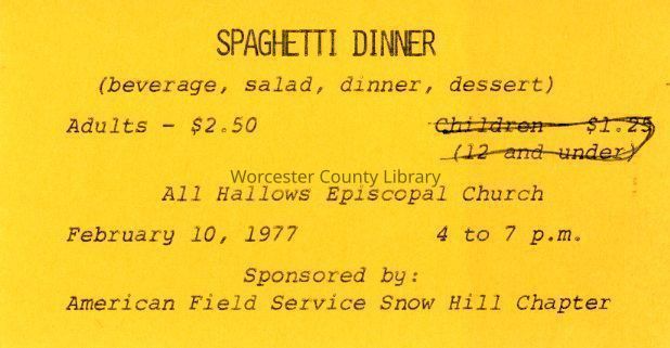 Spaghetti Dinner Advertisement, 1977Entry/Object ID