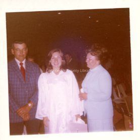 Photograph of Angela Sordano, Roger Richardson, and Mrs. Richardson at Snow Hill graduation, Jun 1973Entry/Object ID