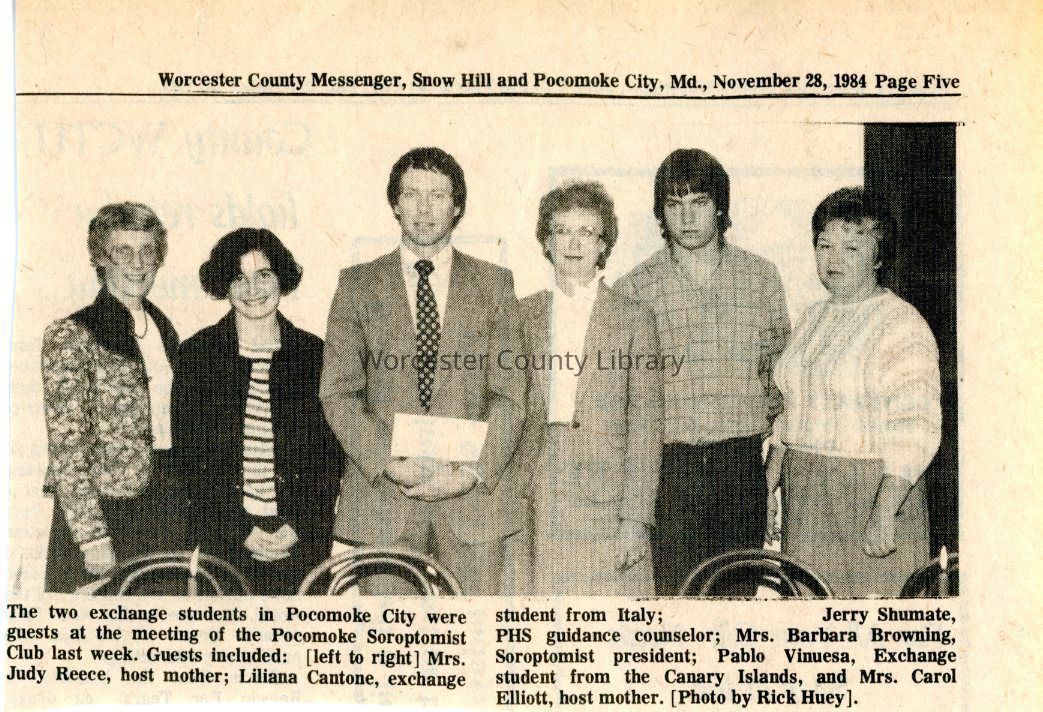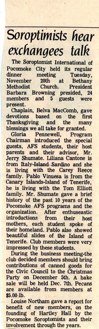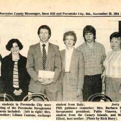 Newspaper clipping, “Soroptimists hear exchanges talk,” Nov. 1984Entry/Object ID