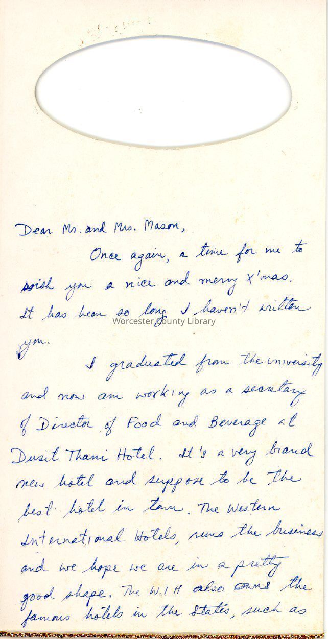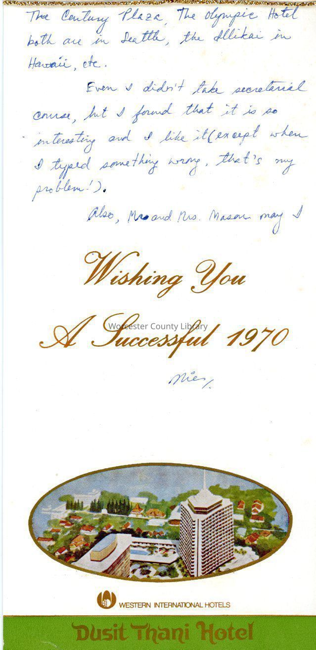 Correspondence, Christmas card, from Nic to Mason family, 1969