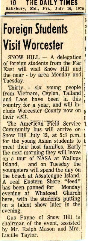 American Field Service, Ralph L. Mason, Jr., Lucile L. Taylor, Augustus William Payne, Snow Hill High School, Whatcoat Methodist Episcopal Church, NASA WallopsCreated By
