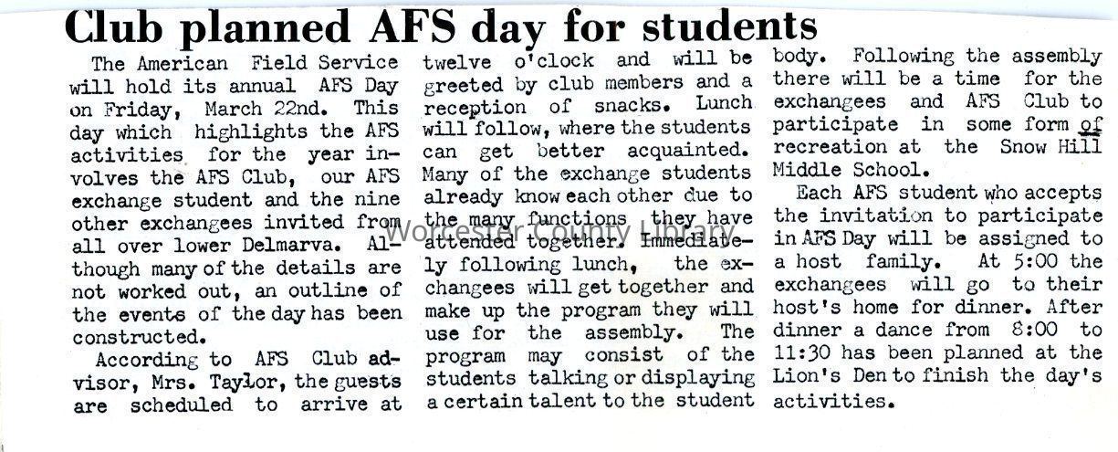 Newsletter clipping, The Eagle, “Club planned AFS day for students”Entry/Object ID