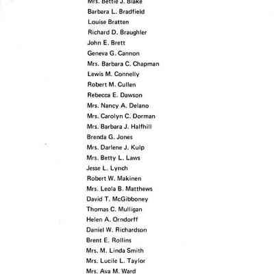 Snow Hill High School, Dorothy Hope Adkins, Wilson Keith Adkins, Edward Bryan Allen, Brenda Ames, Janice Hazel Andrews, Michael Elwood Armstrong, Beverly Jane Ayres, Sandra Regina Baine, Wayne Alexander Ballard, Bettie J. Blake, Brenda Blake, Peter Carl Boettger, Laura Alice Bolling, Anne Bowen, Dianne Estine Bowen, Tammie Bowen, Wayne Charles Bowen, Barbara L. Bradfield, LaDel Ray Bradford, Richard D. Braughler, Kathy Age Brewington, Cheryl Ann Brittingham, Thomas Russell Byrd, Barbara C. Chapman, Michael Rene Coirin, Cheryl Valtina Collick, Robin Larita Coston, Rebecca E. Dawson, Douglass Taylor Delano, Reatta Dennis, Curtis Lee Dickerson, Michael Lawson Donoway, Carolyn C. Dorman, Tandra Denise Ewell, Anita Elizabeth Fayerweather, Rebecca Fiddermon Feetham, Renita Mae Fisher, Norman Keith Freeman, Kathy Frost, Patricia Lee Gordy, Ellen Faye Gray, Deborah Ann Hales, Barbara J. Halfhill, Ronnie Dean Hamaker, Michael Leigh Hambrick, Phyllis Elizabeth Hammond, Della Mae Handy, Gary Cornell Hardy, Mona Harmon, Kathy Jean Harris, Lloyd Clayton Hickman, Katherine Susan Holland, Lee Warren Holloway, Terri Lynn Hooks, Billy William Jackson, Virgil Irvin Jenkins, Robert Wayne Johnson, Barbara Ann Jones, Anne Elizabeth Kenlon, John E. King, Vaughn Calvin Lewis, Angela Cecil Lockwood, Gail Lynn Long, Brenda Sue Lynch, Beverly Annette Manuel, Randall James Mariner, Jr., Ruth Anne Marshall, Cynthia Leatt Martin, Tandra Denise McIntosh, James Dean McIntyre, Polly Marie Miles, Daniel Jude Miller, Frederick Dennis Parker, John Thomas Payne, Vickie Ellen Phillips, Russell Bennum Pilchard III, Ginger Faye Powell, Adele Haven Presby, Debra Ann Price, Donna Kay Richardson West, Raymond Kenneth Riggin, Bonnie Suellen Robinson, Margaret Mary Runde, Claude Ryan Saidla, Michael Edgar Shenton, Marsheila Lucinda Shockley, Melin Lewis Showell, Bruce Hilton Skeeter, Paul Edward Stark, Edward Eugene Steininger, Charles Strickler, Robert Lee Taylor Strong, Tyrone Louis Suggs, Lucile L. Taylor, Ola Mae Taylor, Wendell Jerome Timmons, Clinton Richard Tindley, Lynette Louise Tindley, John Albert Townsend, Maurice Andrez Townsend, Oscar Townsend, Carolyn Lee Trader, Thomas Lee Trader, Dorothy Lynn Travers, Sylvia Frances Truitt, Kenneth Donnell Tull, Larry William Tyndall, Patricia Laverne Victor, Robert Whalen Walton, Candace Dorene Waters, Donald Weldon Waters, Sherwood Raymond Waters, Anne Watson, Barbara Joan West, Frank Mitchell West, Deborah Lynn White, Paul Franklin White, Richard Lee White, Smitty Williams, Bruce Morgan Young, Eugene Kirk Beall, John E. Brett, Regina Brittingham, Elmer James Chamberlain, Sandra Lessie Coston, Harlean Althea Dennis, William Robert Kuhn, Jr., Phillip Kunzelman, Rosalind Diana Purnell, Constance Gale Rusell, James Irvin Scarborough, Jr., Raymond Scholfield, Cheryl Doreen Waters, Carrianne Lea Watson, Maurice D. Barber, Geneva G. Cannon, Robert M. Cullen, Betty L. Laws, Jesse L. Lynch, Brent E. Rollins, Ronald M. Wilson, Kelly Hunt Shumate, Catherine Shields Early McJilton, Ethel M. Bowen, Louise Bratten, Lewis M. Connelly, Nancy Bibb Adair Delano, Darlene J. Kulp, Leola B. Matthews, Daniel W. Richardson, M. Linda Smith, Warner J. Wilson, Brenda G. Jones, Dagmar Ingrid Landtau, David T. McGibboney, Thomas Coleman Mulligan, Jr., Helen A. Orndorff, Ava M. Ward, Thelma J. Williams, Beverly A. Wilson