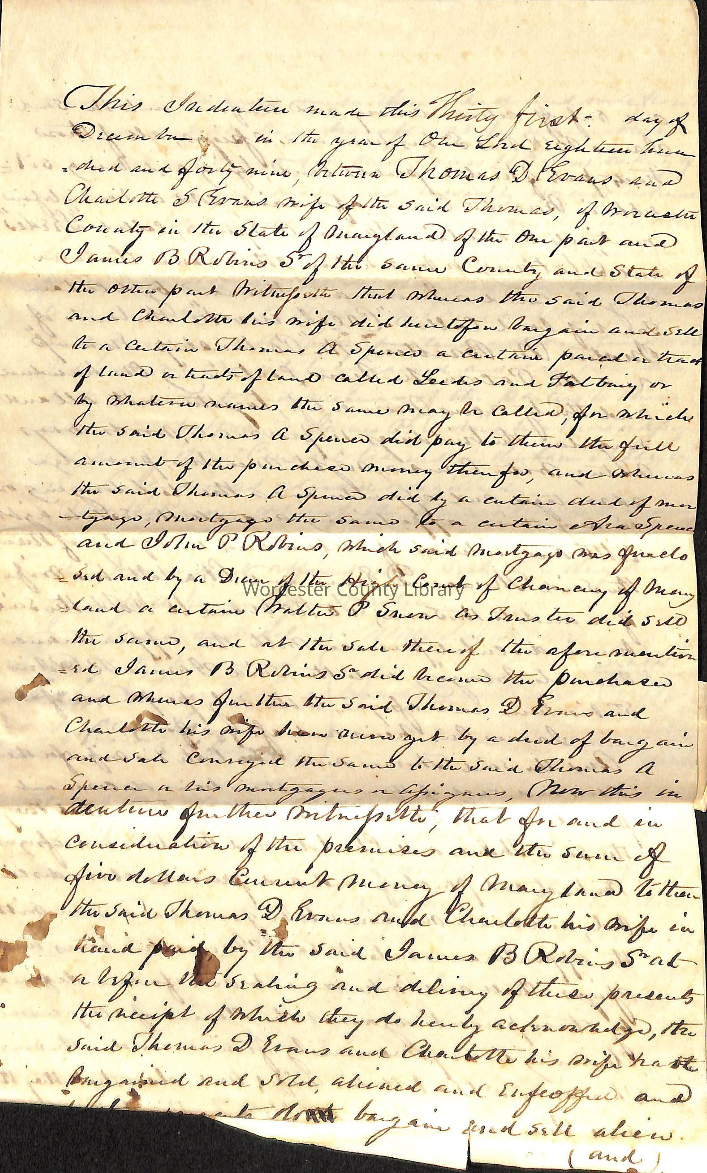Indenture, Thomas D. Evans, Charlotte S. Evans, and James B. Robins, 1849Entry/Object ID