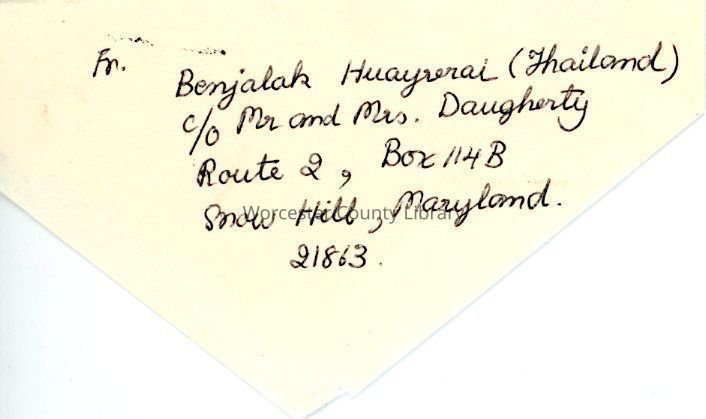 Return address of Benjalak Huayrerai, 1978Entry/Object ID