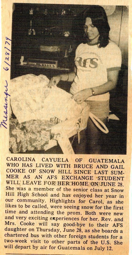Newspaper clipping, Carolina Cayeula departing, June 28, 1979Entry/Object ID