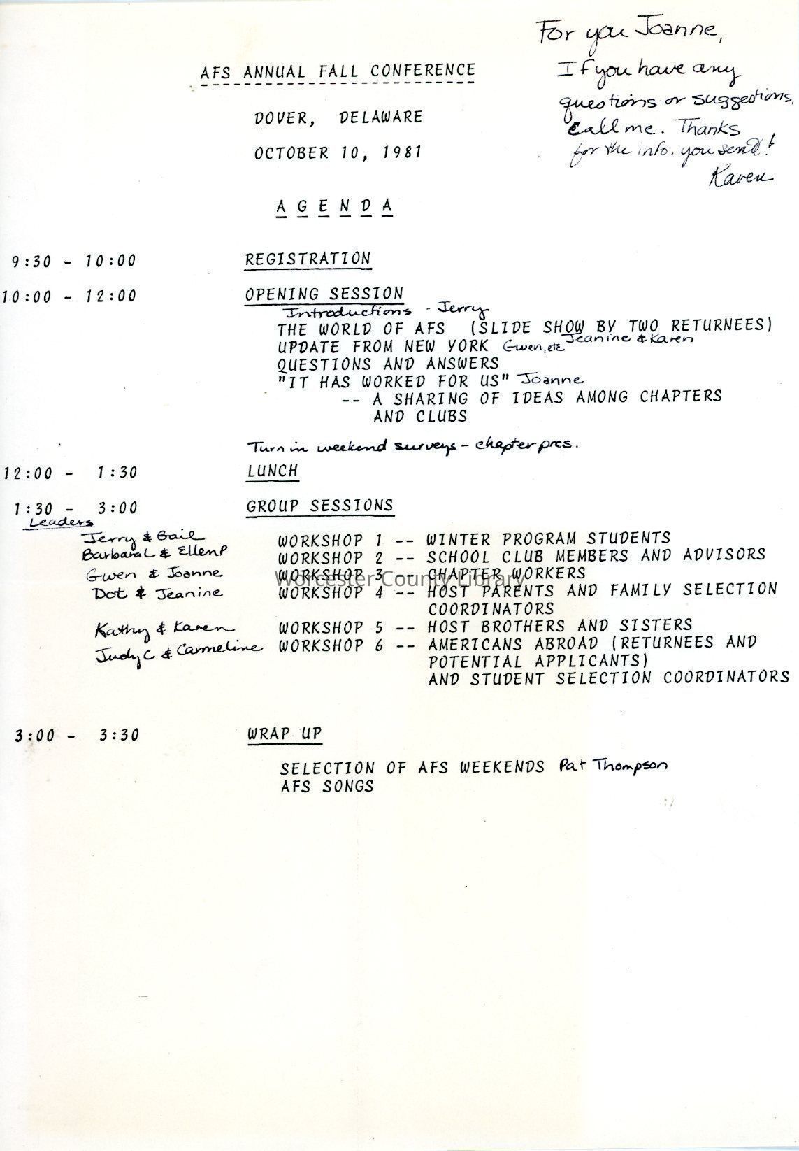 Agenda, AFS Annual Fall Conference, Oct 1981Entry/Object ID