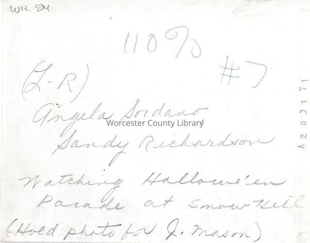 Photograph of Angela Sordano and Sandy Richardson at Snow Hill Halloween parade, 1972Entry/Object ID