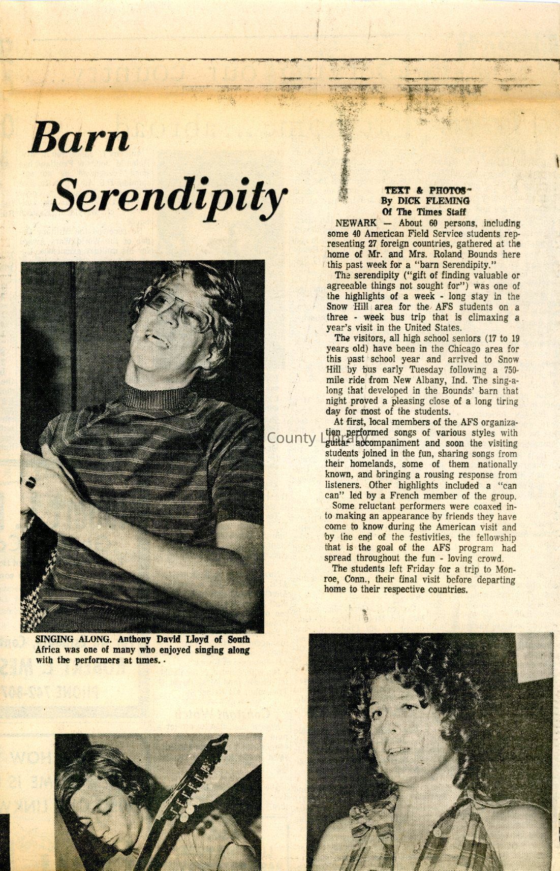 Newspaper clipping, “Barn Serendipity,” July 7, 1974Entry/Object ID