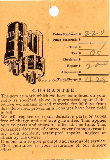 Owner’s Warranty, Johnny’s Radio Service, Aug. 1949Entry/Object ID