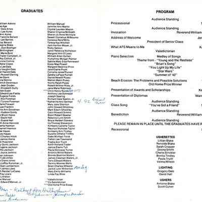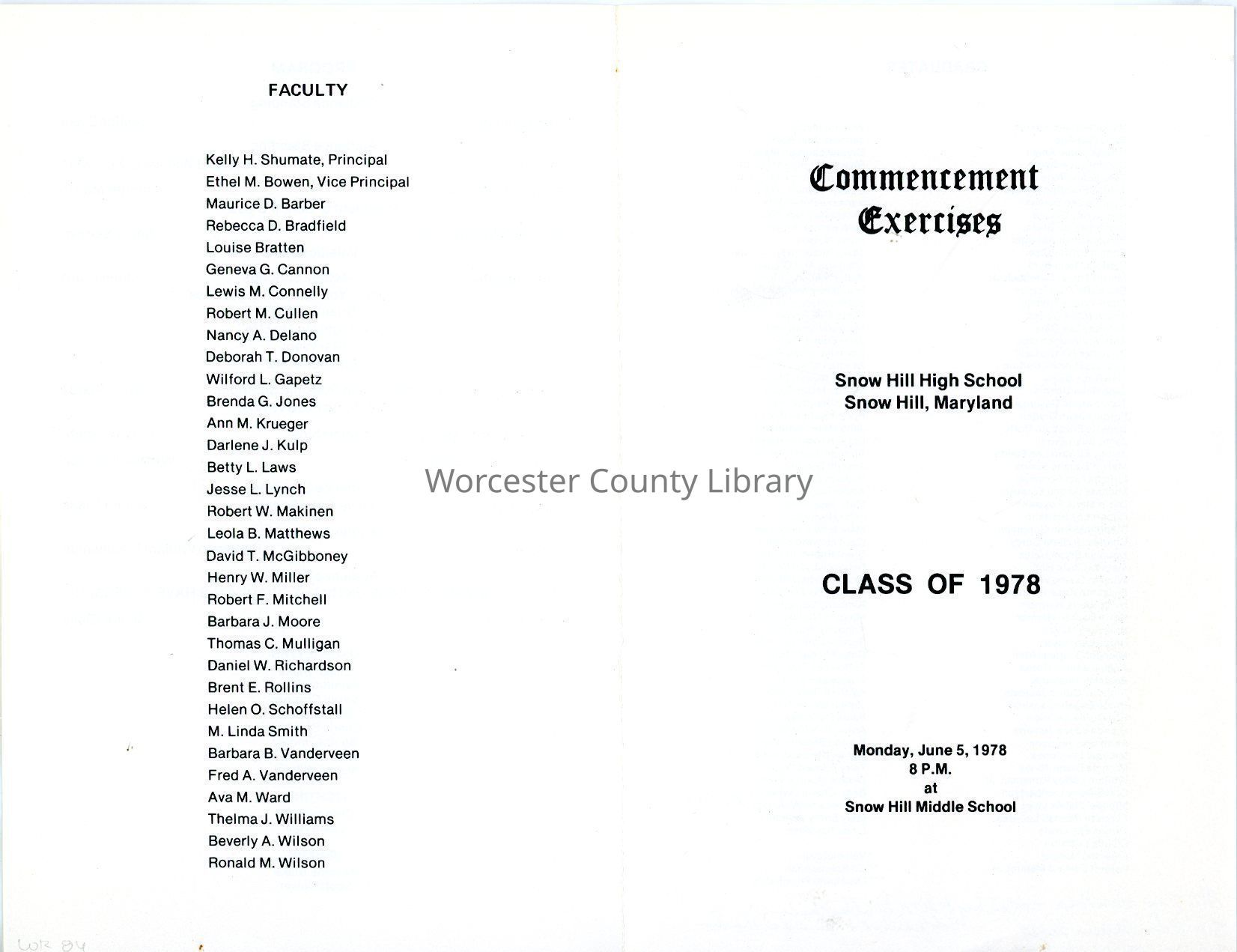 Victor William Adkins, Dana Rae Age, Gregory Dale Ames, Dominic Lee Ayres, Valerie Ann Ayres, Teresa Franzine Ballard, Cynthia Lee Barnes, Ronna Kay Bevard Carmean Lynch, Iretha Regina Blake, Barbara Jean Boettger Robinson, Ronald Brittingham, Patricia Marie Byrd, Merrill Trader Campbell, Jr., Earl LeRoy Collick, Jr., Elton Tyrone Collins, Joann Marie Copes, Anthony Lee Dale, Anthony Vaughn Dale, Sylvester Harold Dale, Thomas Russell Darling, Lisa Rose Davis, Jane Rena Dennis, Tony Patrick Devereaux, Patricia Jean Dryden, Danette Elizabeth Duffy, Janet Ellen Ewell, James Edward Lee Fields, Melvin Eugene Fields, Lutisha Ann Foreman, Michael Tyrone Foreman, Dawn Marie Foxwell Shenton, Robert Lee Franklin, Stephanie Ann Goodman, Charles Hudson Gordy, Douglas Bryan Hales, Marsha Gayle Hall, William Duane Hall, Elizabeth Anne Hannold, Ivy Wilberta Harmon, Kevin Darnell Harmon, Brian Lee Hayes, Bruce Leo Hayes, Michael Charles Hitch, Angela Janice Horne, Benjalak Huayrerai, Anthony Quinc Jackson, Bruce Eugene Jackson, Roy Curtis Jackson, Glenda Joyce Jenkins, Keith Ivan Johnson, Michael Lee Jones, Michele Diane Jones, William LeRoy Kunsman, Jr., Curtis Dean Lambertson, Michael James Laws, Kenneth Randall LeCates, Teresa Fay Lewis, Claude Littleton, Freeman Manuel, Wilbert Edward Manuel, Jr., William Manuel, Jennifer Ann Martin, Crystal Laureen Mason, Sharon Virginia McGrath, Sharon Jo Anne McIntyre, Sewell Cornelius Milbourne, Vanessa Rene' Mills, Teresa Kay Mitchell, Jack Kenton Moyer, Jr., Ricky Nelson, Janet Rebecca Nicholson, Margaret Ann O'Leary, William Allen Outten, Humphrey Morgan Palmer, Sabine Mary Elsa Pennewell, Essie Mae Powell, Margaret Beatrice Price, Jane Elaine Pruitt Bradford, Cornella Jenee' Purnell, Zandra LaFaye Purnell, Daniel Newell Pusey, Marion Mann Pusey, Norris Ralph Pusey, Robert Wilmer Riley, Jr., Jane Marie Robinson, Chris Henry Runde, Anthony Lee Schnepel, Joseph Searing, Richard Gale Seaton, Jr., Katherine Ann Serman, Mary Jane Shenton Dolby, John Howard Shockley, Mark Edwin Shockley, Cecil Howard Simms, Brent Robert Skeeter, Rebecca Lynn Smith, Bruce Herbert Stevens, Ira Thomas Stevenson, Kimberly Ann Tindley, Suzette Othelia Tindley, Gabe Michael Torok, Felton Lee Townsend, Fredia Ann Truitt, Keith Holland Trader, Janice Elaine Tull, Paula Donoway Turner, Antonio Willie Waters, Brenda Beatrice Waters, James Cleaman Waters, Jr., Terry Edward Waters, Dennis Monroe Wells, Brian Charles Wheeler, Jackie Lynn Wilkerson Brown, Mary Emily Williams, Linda Fay Wise, Kathy Brittingham, Ron Brittingham, Melson Fields, Bob Johnson, Jennifer Martin, Stephanie Goodman, William LeRoy Kunsman, Sr., Kelly Hunt Shumate, Warner J. Wilson, Lillian Blake, Renolda Blake, Sarah Ellen Cropper Gordy, Donna Smith, Cherie Strickler, Bonita Tindley, Paula Truitt, Velma Wilson, Gregory Dale, David Hall, Antoine Blake, Scott Culver, Ethel M. Bowen, Maurice D. Barber, Rebecca D. Bradfield, Louise Bratten, Geneva G. Cannon, Lewis M. Connelly, Robert M. Cullen, Nancy Bibb Adair Delano, Deborah T. Donovan, Wilford L. Gapetz, Brenda G. Jones, Ann M. Krueger, Darlene J. Kulp, Betty L. Laws, Jesse L. Lynch, Robert W. Makinen, Leola B. Matthews, David T. McGibboney, Henry W. Miller, Robert F. Mitchell, Barbara J. Moore, Thomas Coleman Mulligan, Jr., Daniel W. Richardson, Brent E. Rollins, Helen O. Schoffstall, M. Linda Smith, Barbara B. Vanderveen, Fred A. Vanderveen, Ava M. Ward, Thelma J. Williams, Beverly A. Wilson, Ronald M. Wilson, Snow Hill High School, Snow Hill Middle School