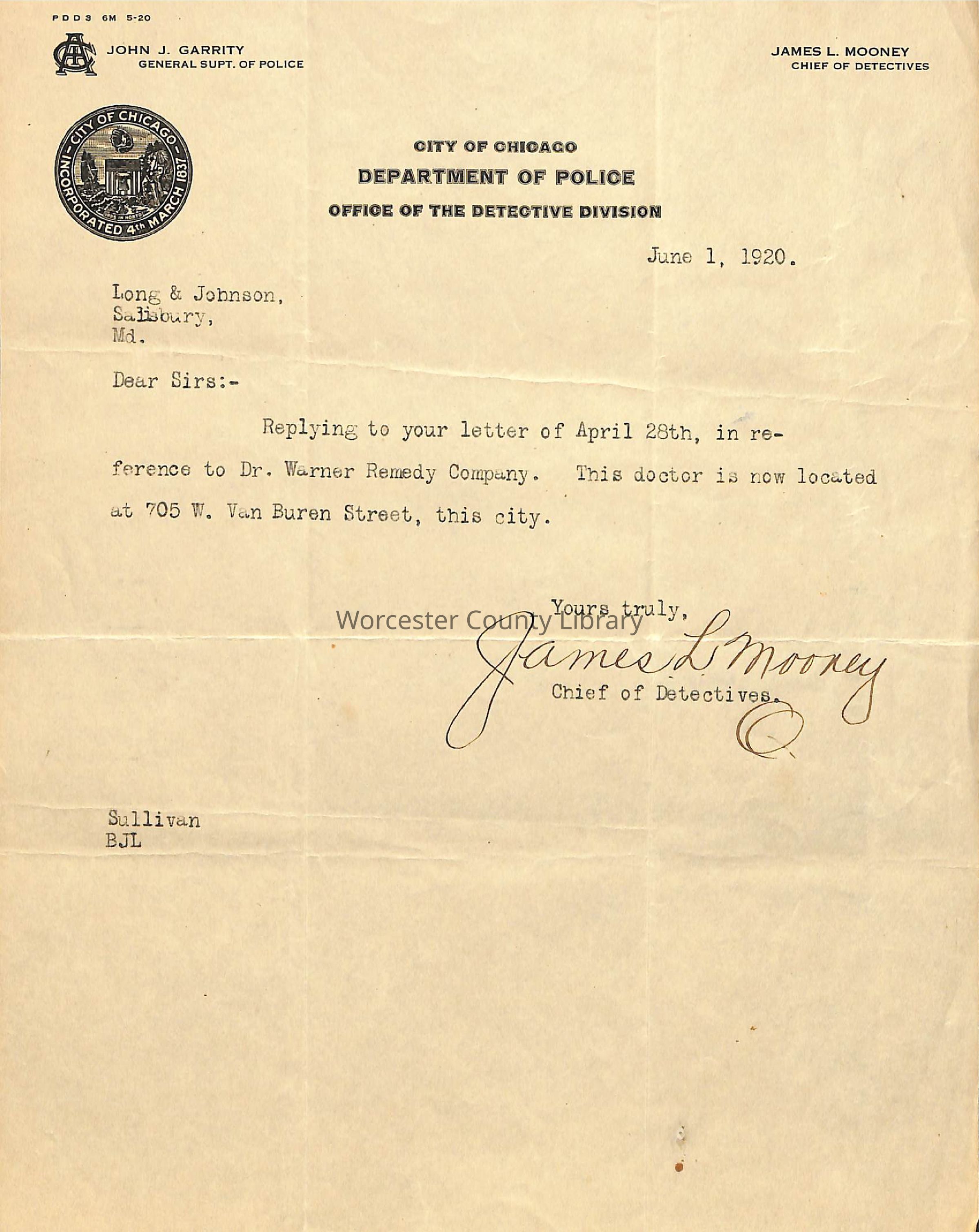 Bank Correspondence, City of Chicago Dept. of Police, June 1, 1920Entry/Object ID