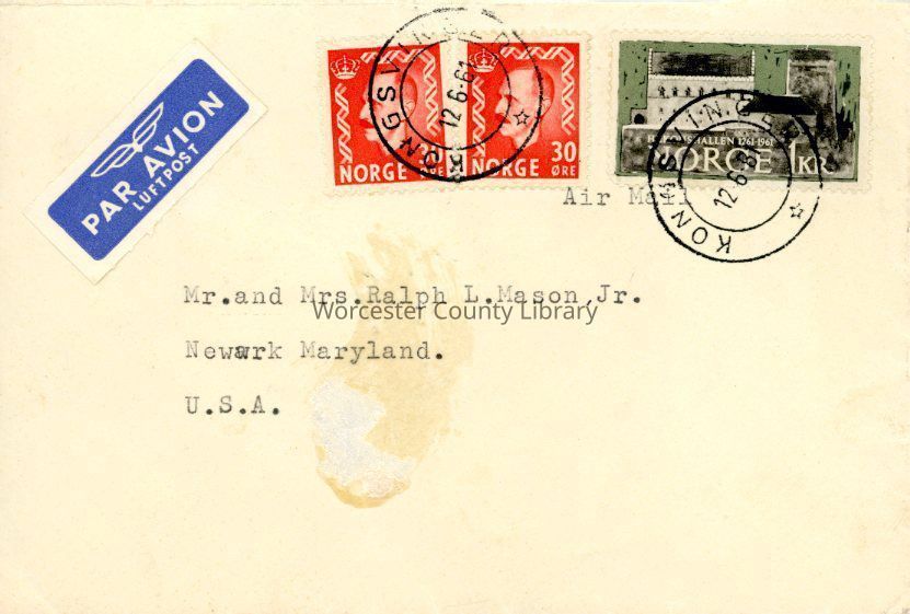 Correspondence, Mr. & Mrs. Stomner and Mr. & Mrs. Mason (with envelope), Dec. 1961Entry/Object ID