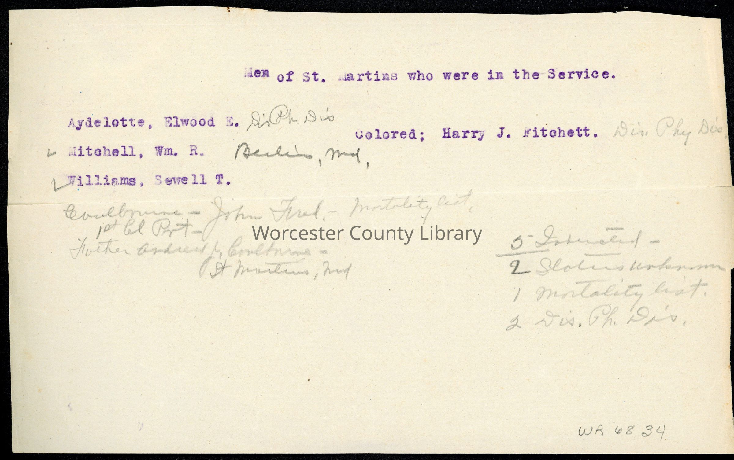 Men of St. Martins who were in the Service, World War IEntry/Object ID