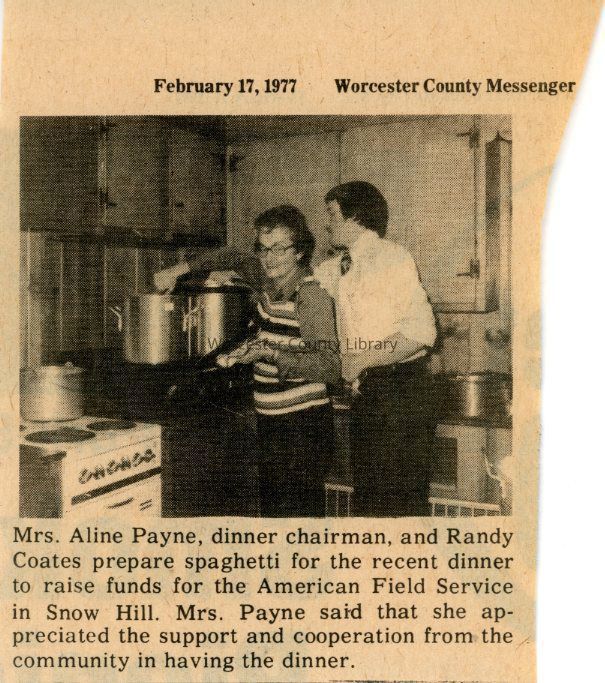 Newspaper clipping, AFS Spaghetti Dinner, Aline Payne and Randy Coates, Feb. 17, 1977Entry/Object ID