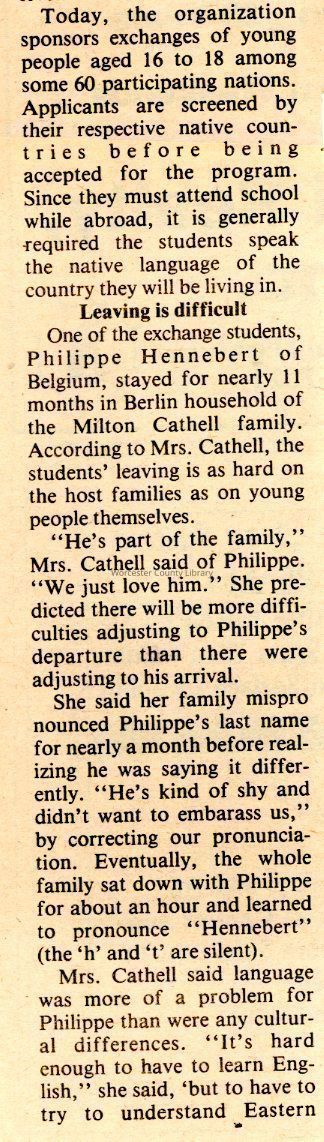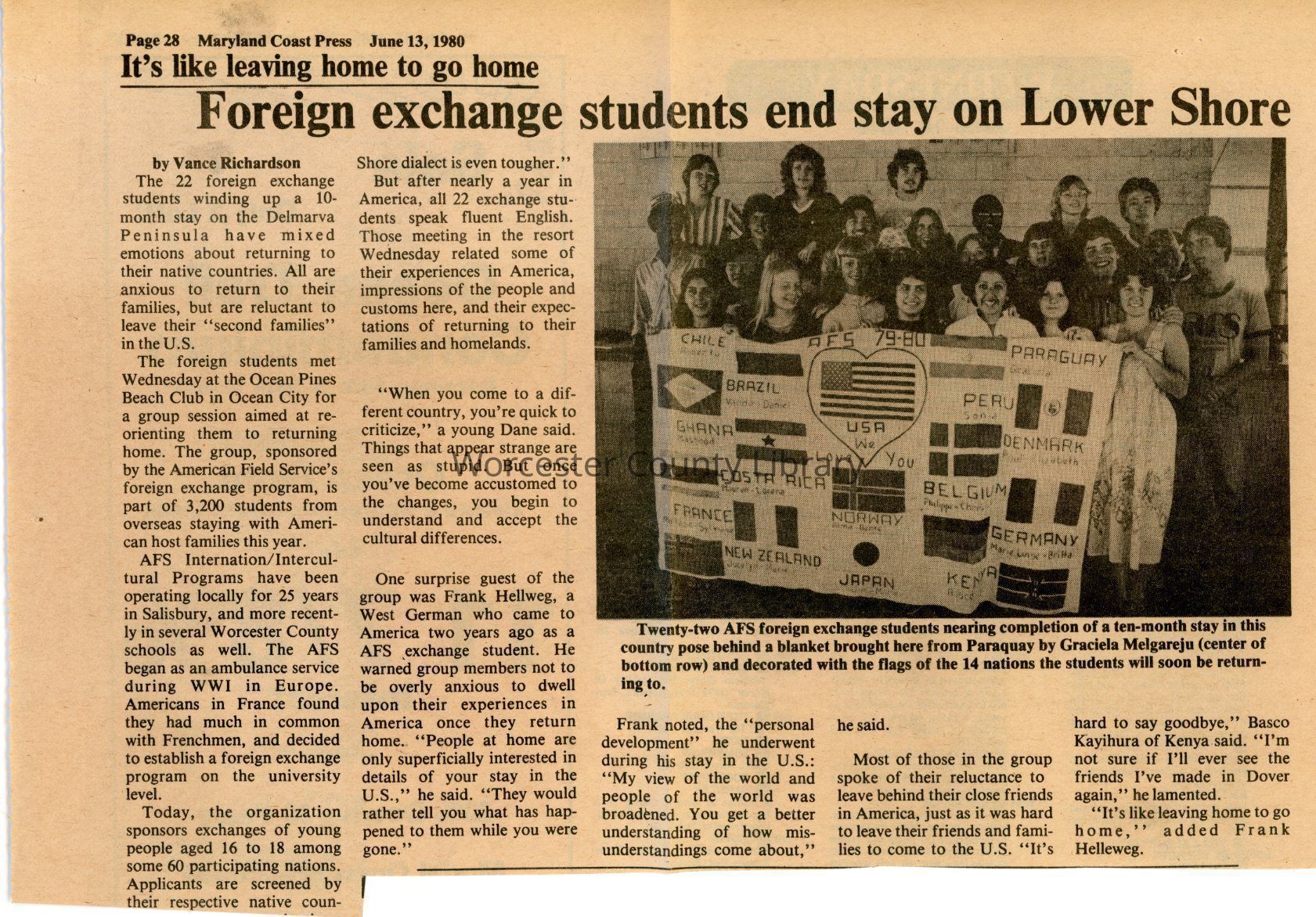 Newspaper clipping, “Foreign exchange students end stay on Lower Shore,” June 13, 1980Entry/Object ID