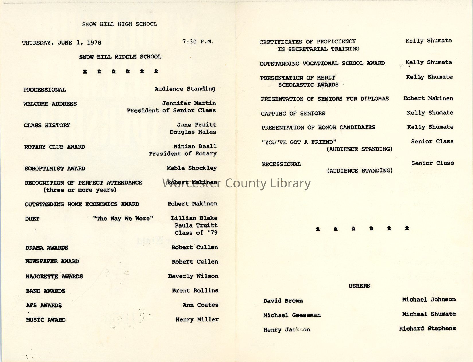 Ninian Beall, Lillian Blake, David Brown, Ann Bishop Sturgis Coates, Michael Geesaman, Douglas Bryan Hales, Henry Jackson, Jennifer Ann Martin, Henry Miller, Jane Elaine Pruitt Bradford, Brent E. Rollins, Mable Shockley, Michael Shumate, Richard Stephens, Paula Truitt, Kelly Hunt Shumate, Beverly A. Wilson