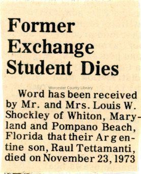 Loretta Ann Herpel Shockley, Louis William Shockley, Sr., Raul Oscar Eduard Tettamanti, Snow Hill High School, American Field ServiceCreated By