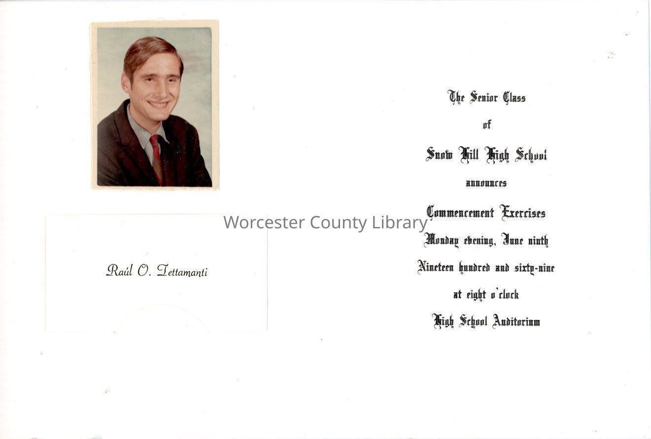 Commencement Invitation, Snow Hill High School, Raul Tettamanti, June 1969Entry/Object ID