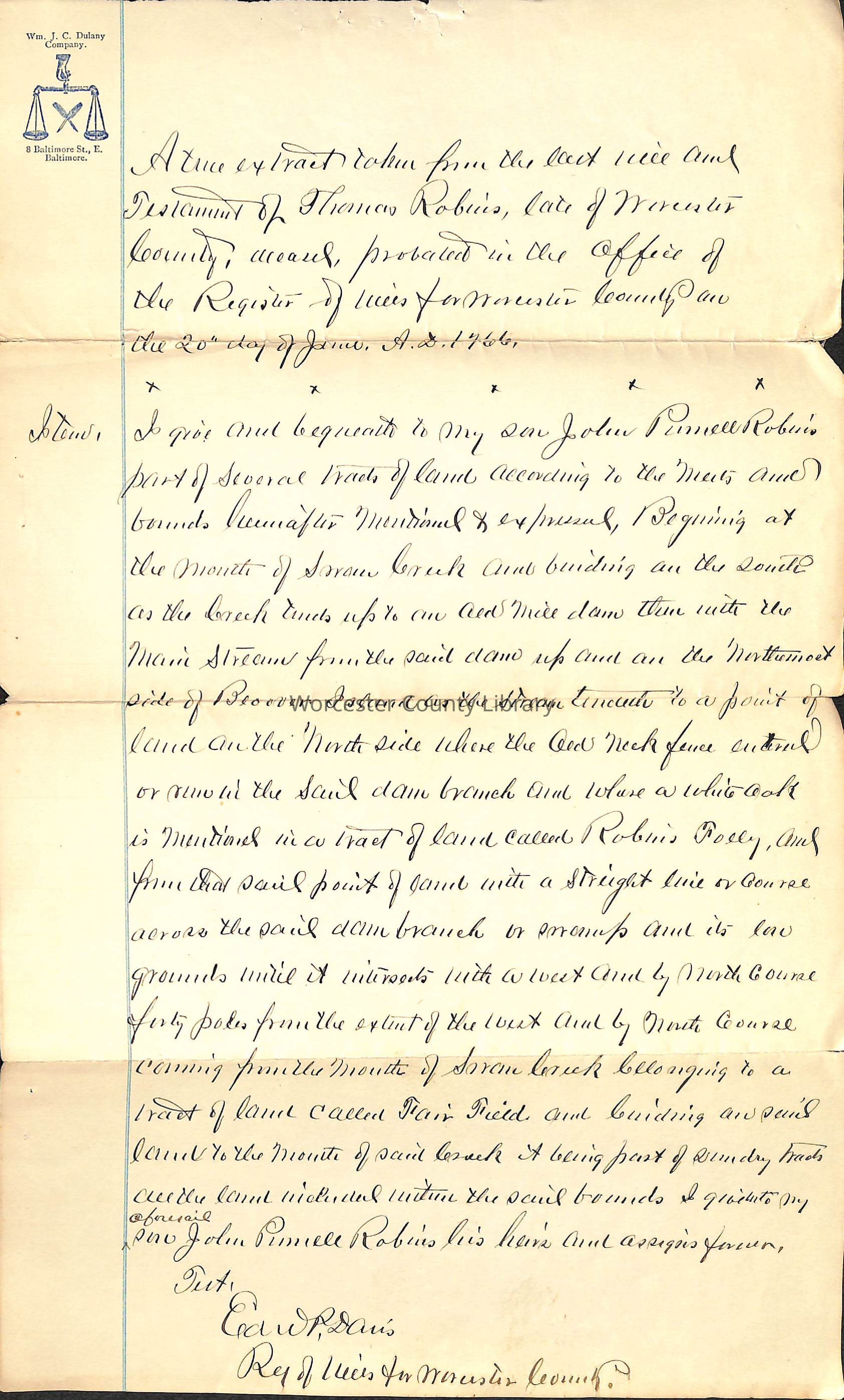 Will Excerpt, Thomas Robins, 1766Entry/Object ID