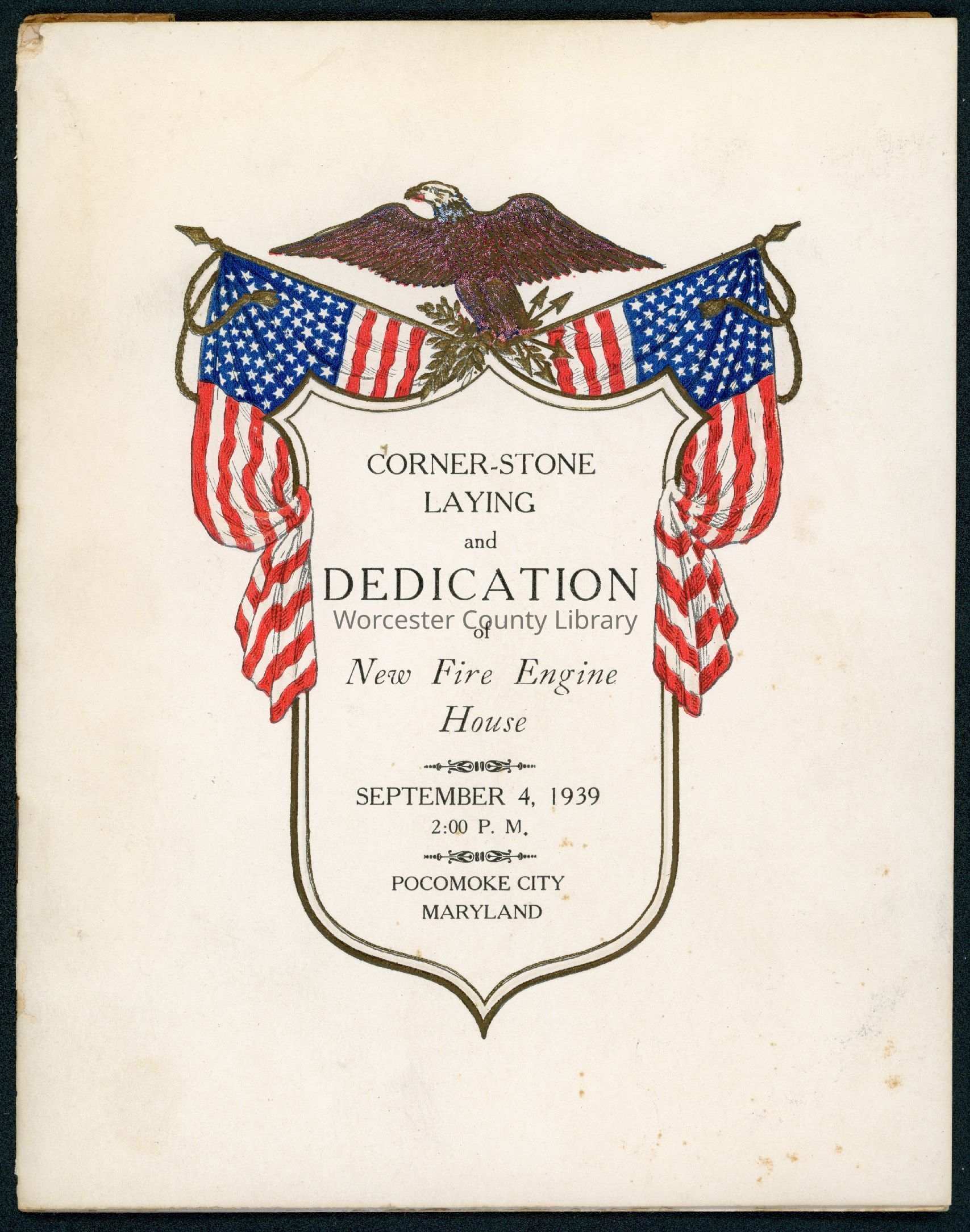Pocomoke City Fire Company, Edward Wilfred Ross, J. T. Nock, W. H. Dryden, L. J. Hancock, Godfrey Child, Mildred Schoolfield, A. W. Brittingham, Fred U. Henderson, E. R. Dickerson, John Causey, George H. Henderson, Johnson Payne, G. S. Smullin, Herman Ellis, Paul Vincent, William Hillman, James Ennis, William Ennis, Alfred Holt, Clayton Lambertson, William Keim, Jr., William Hayman, Linwood McDaniel, Henry Watson, Colie Miller, Jr., Milton Spide, James Mulvenna, Harold Lambertson, Earl C. Thompson, Darcy Evans, Harvey Bradshaw, Lacey Fossette Dryden, Carmel Wilson, Edward Gladding, William Hancock, Edward Solum, Arthur Brittingham, Ashton Young, Eldred Hill, Ephriam Hillman, Mrs. George H. Henderson, Mrs. William F. Hillman, Jr., Mrs. Earl C. Thompson, Manie L. Taylor Dryden, Mrs. Harvey Bradshaw, Mrs. Edwin Brittingham, Vivian Julia Mariner Bull, Mrs. Clarence Bunting, Mrs. William Bunting, Mrs. John Causey, Mrs. Ernest Dickerson, Pauline Dryden, Mrs. James Ennis, Mrs. William Ennis, Mrs. Edward Gladding, Mrs. Ray Gladding, Mrs. Edward Gremmel, Mrs. Fred U. Henderson, Mrs. Eldred Hill, Mrs. Edward Kelly, Mrs. Clayton Lambertson, Mrs. Harold Lambertson, Mrs. Charles Mason, Mrs. Harry Melvin, Mrs. Archie Merrill, Mrs. Earl Merrill, Myrtle Mister, Mrs. Johnson Payne, Mrs. Willard Richardson, Mrs. S. W. Russell, Mrs. Dewey Scott, Mrs. Robley Small, Mrs. Edward Solum, Mrs. Milton Spide, Mabel Thompson, Winnie Townsend, Mrs. Leon Vane, Mrs. Paul Vincent, Mrs. Mervin Ward, Mrs. Henry Watson, Mrs. Edward Watson, Mrs. William Watson, Mrs. Carmel Wilson, Mrs. George Young, Mrs. William Keim, Jr., Mrs. John W. Wootten, John W. Wootten, George L. Radcliffe, R. B. Higgins, David J. Ward, Robert B. Stewart