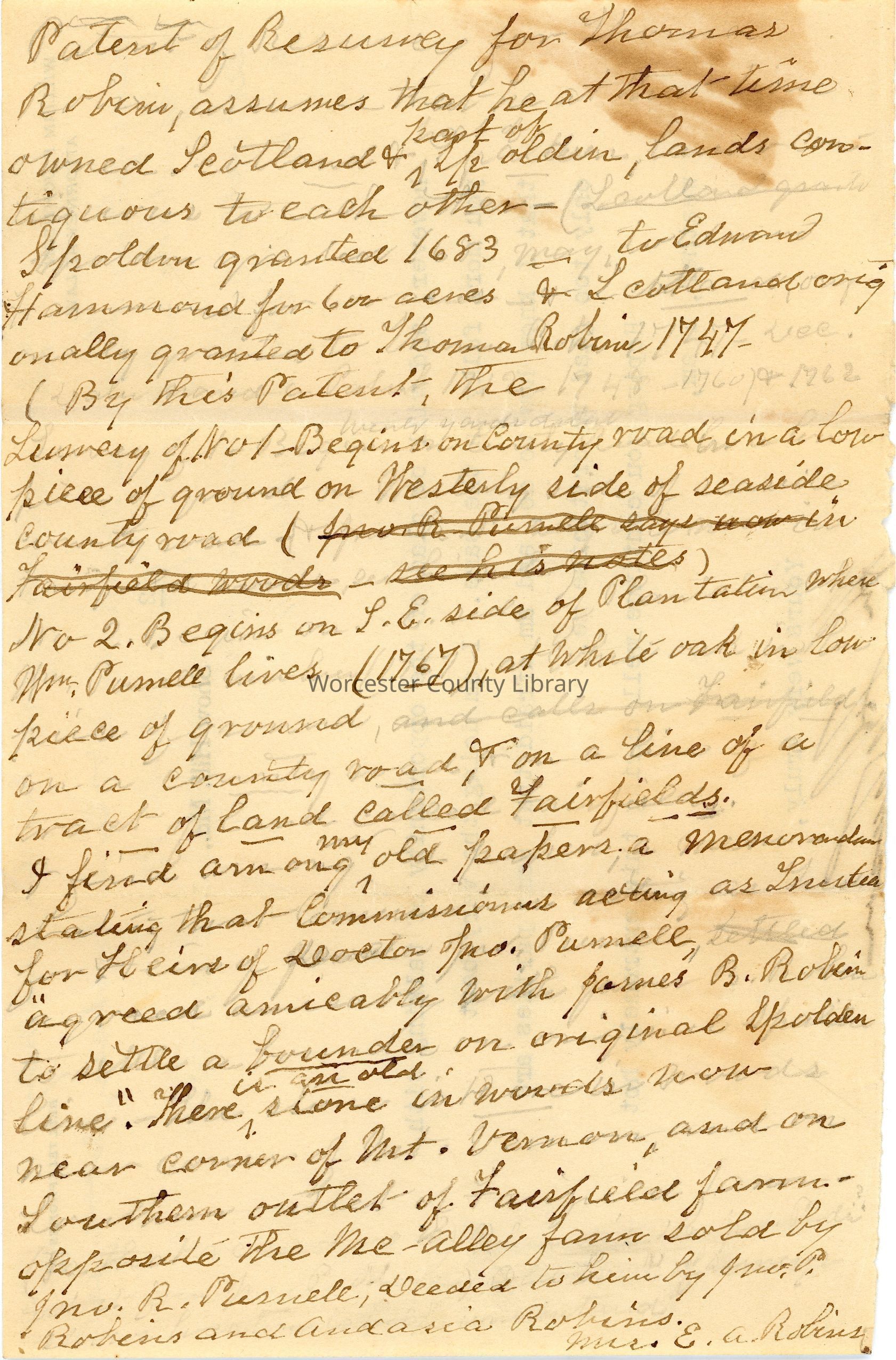 Patent notes, Thomas Robins and Mrs. E. A. RobinsEntry/Object ID