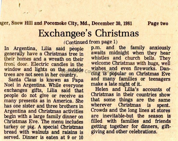 Newspaper clipping, “Northern & southern Yules compared,” Dec. 30, 1982Entry/Object ID