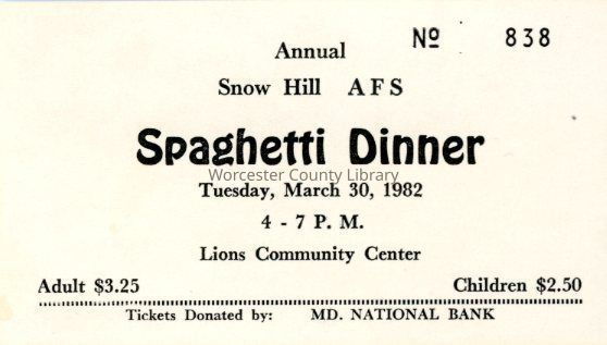 Ticket for AFS Spaghetti Dinner, Mar 1982Entry/Object ID