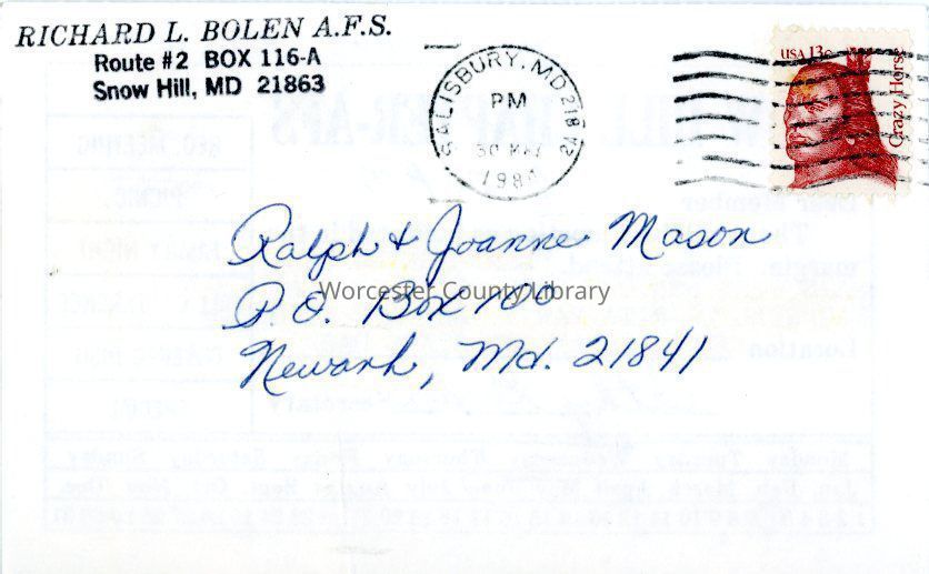Invitation to Snow Hill AFS Picnic, Jun, 1984Entry/Object ID