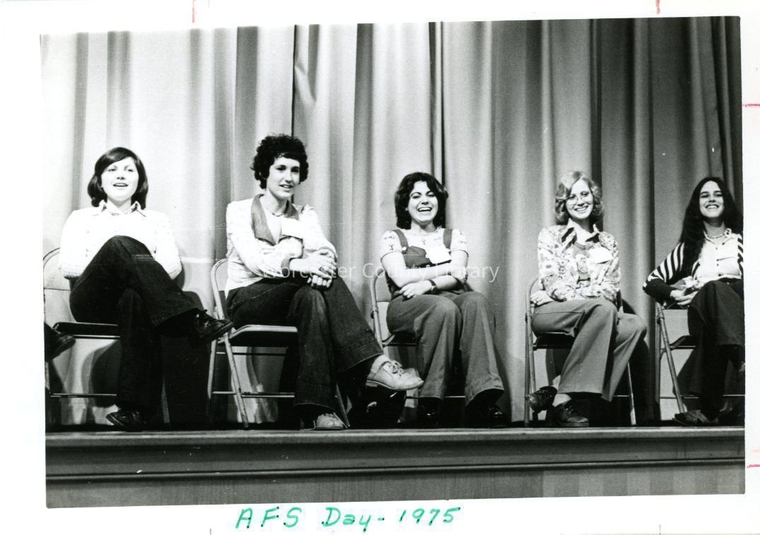 Photograph from AFS Day, Daisy Hancock, Paul Bailey, and 3 unidentified students, 1975Entry/Object ID