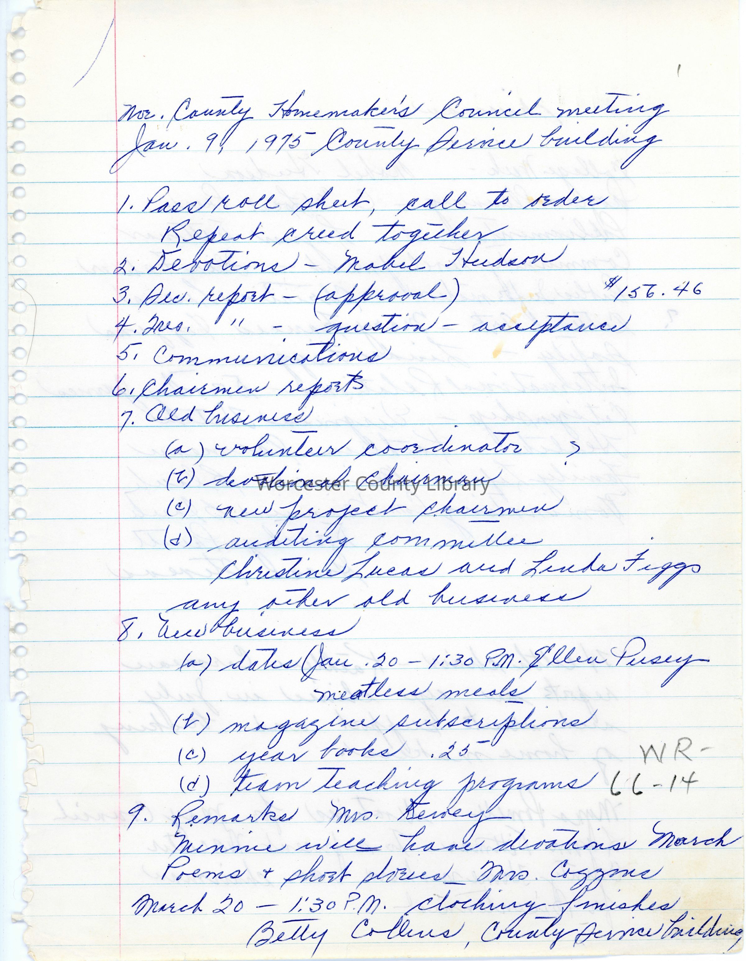 Worcester County Homemaker Council meeting March 13, 1975 County Service building