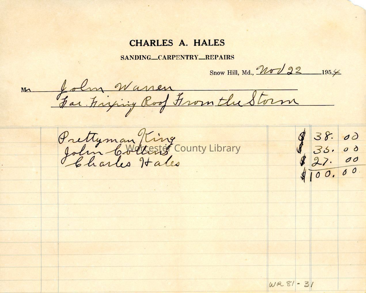 Invoice, John Warner, Nov. 1954Entry/Object ID