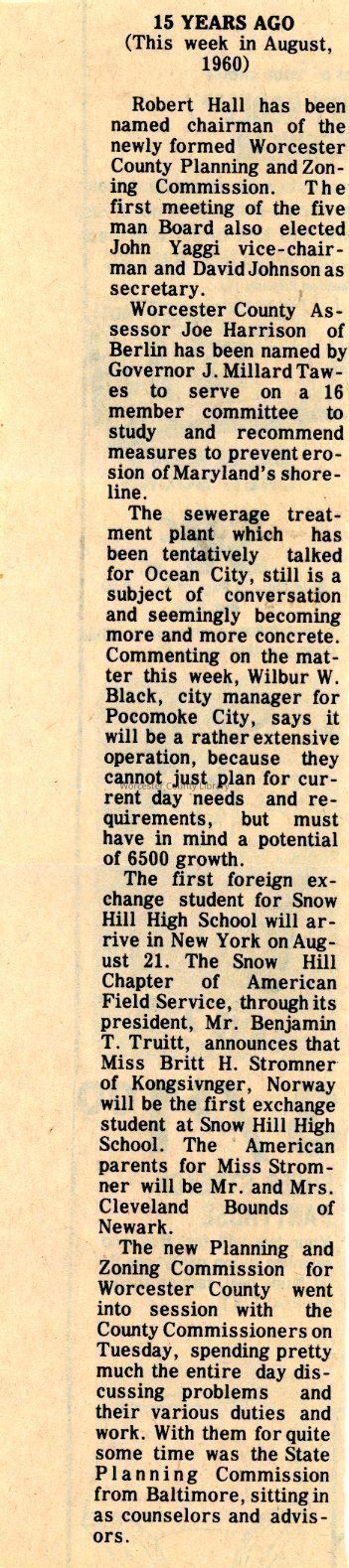 Newspaper clipping, “15 Years Ago, This week in August, 1960” (Britt Stomner), Aug. 1975Entry/Object ID