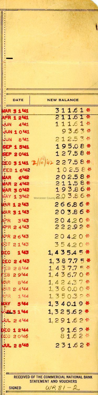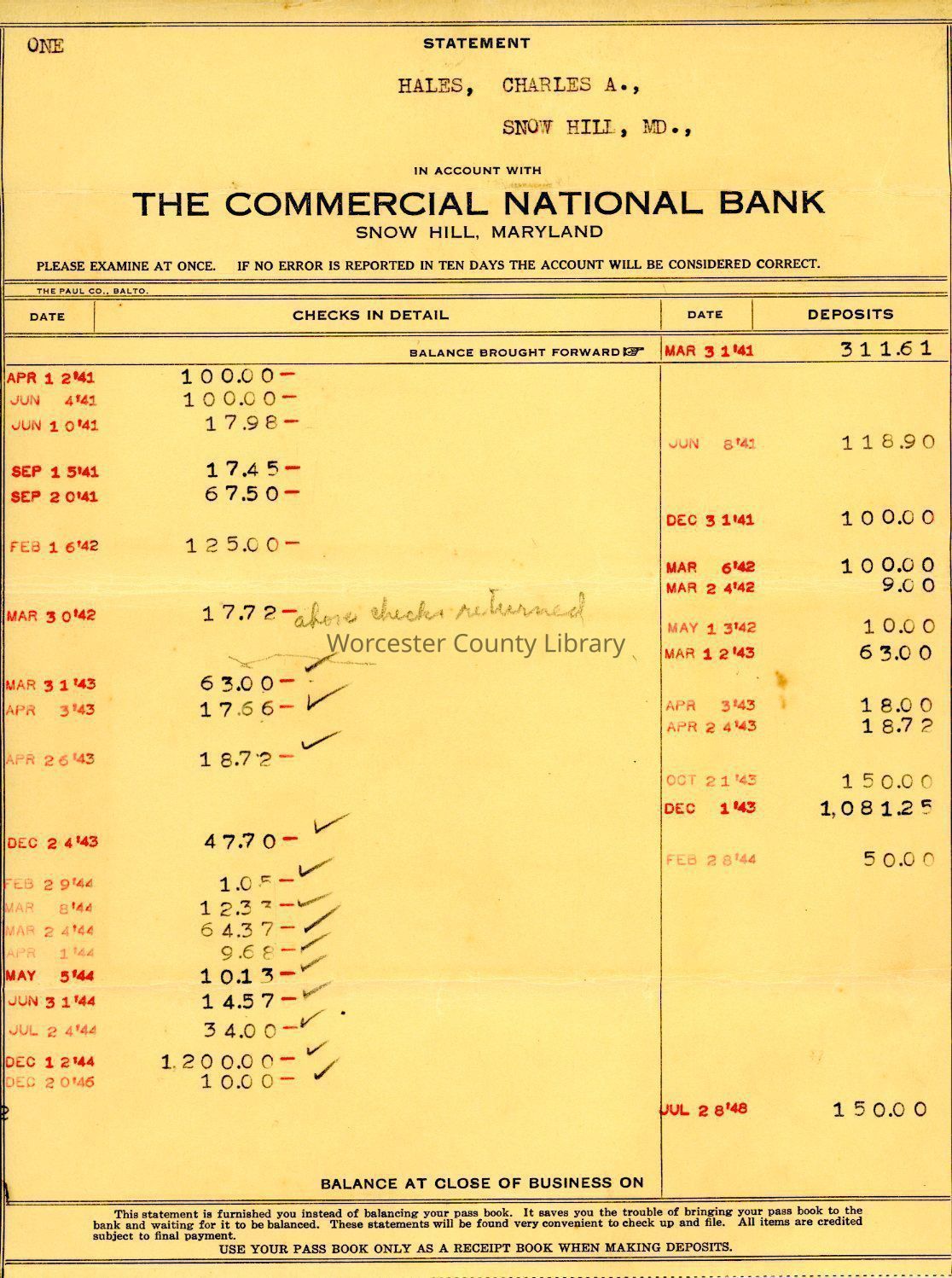 Bank Statement, The Commercial National Bank, 1941Entry/Object ID