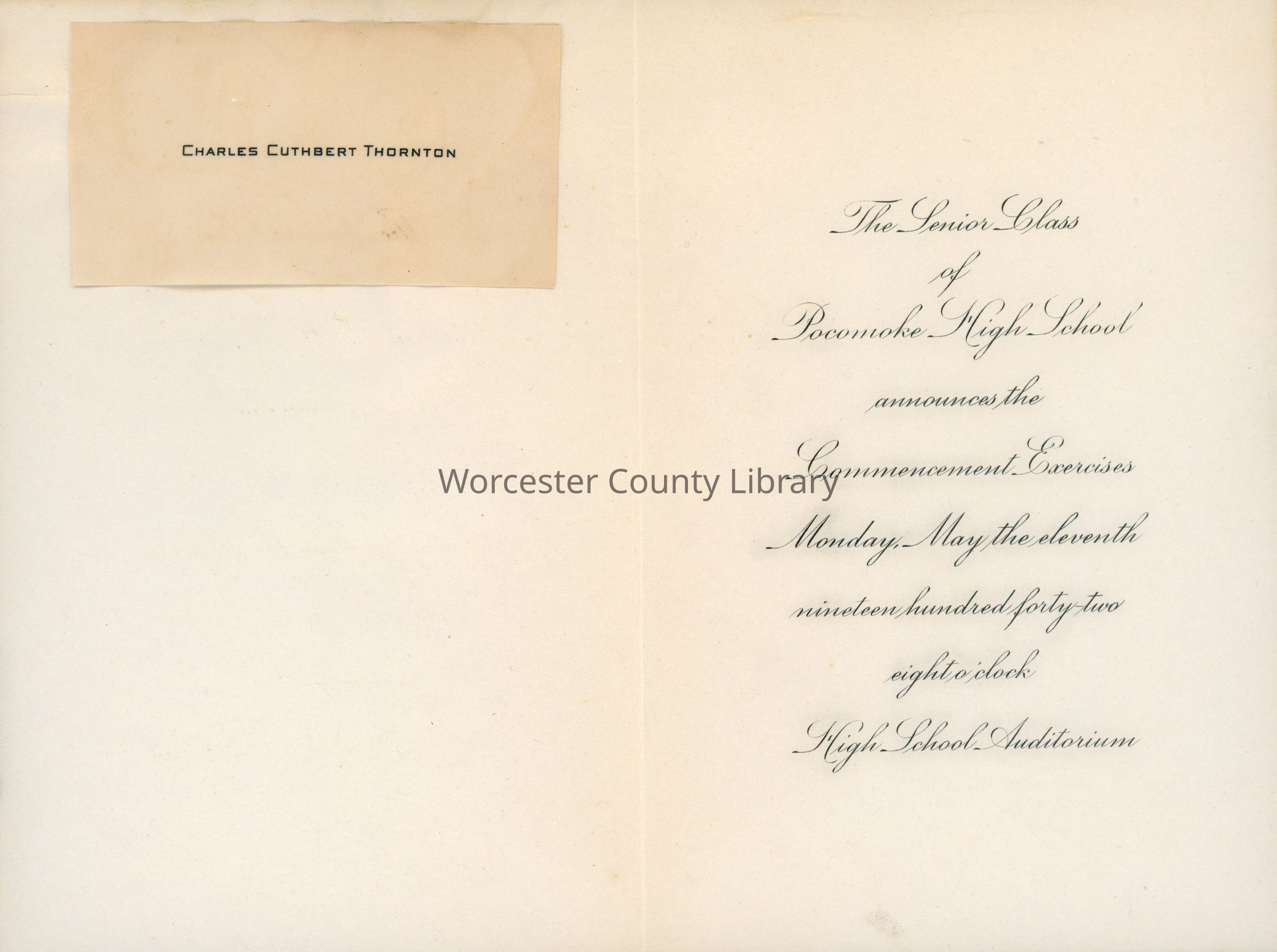 Commencement Invitation, Pocomoke High School, 1942Entry/Object ID