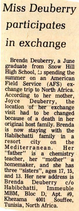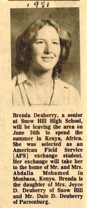 Newspaper clipping, “Miss Deuberry participates in exchange,” 1981Entry/Object ID