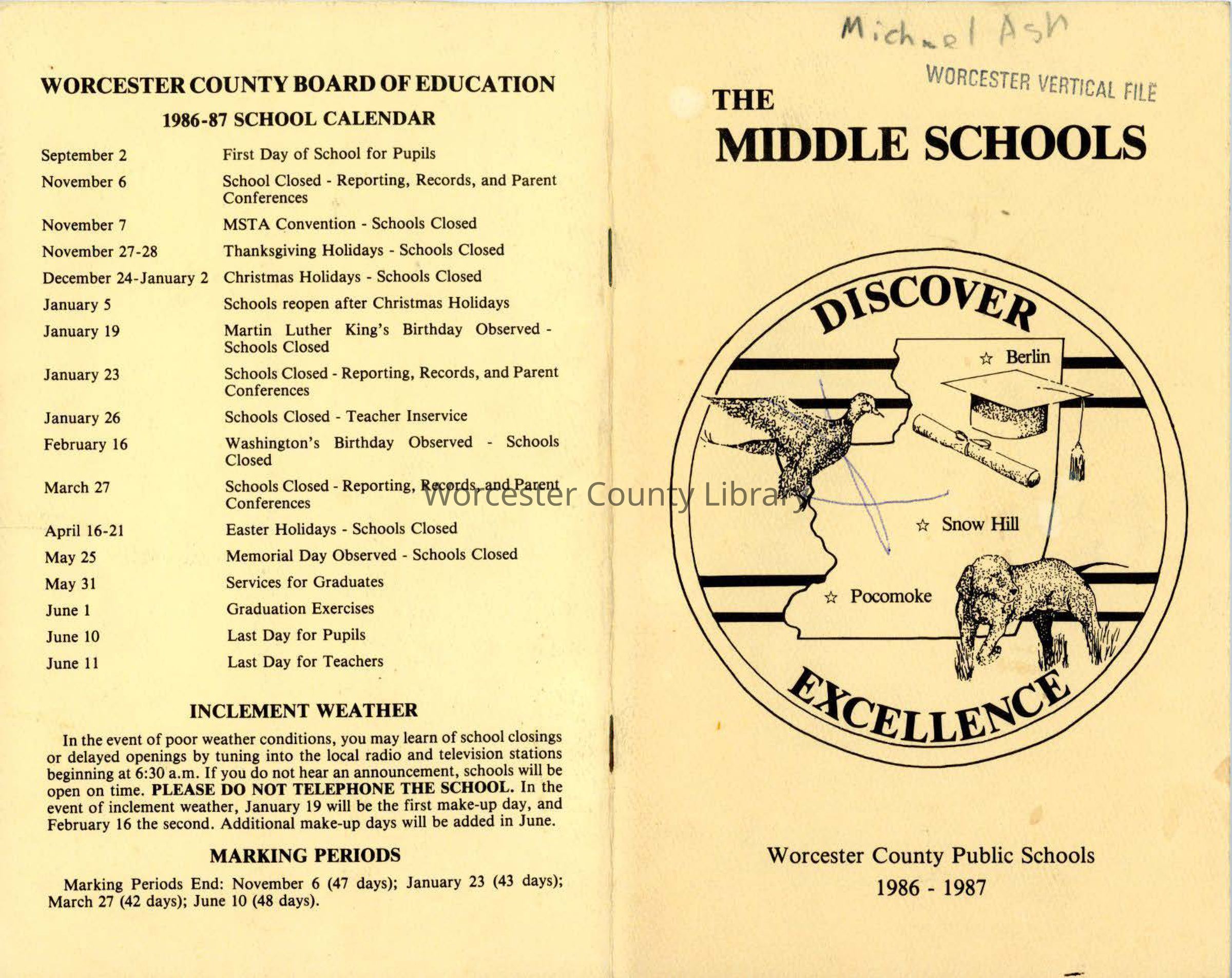 Middle School Handbook, WCPS, 1986-1987Entry/Object ID