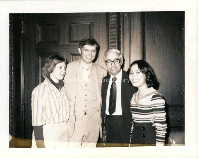 Photograph of Lois Daugherty, Kirk Daugherty, Sen. Homer White, and Benjalak Huayrerai, Mar 1978Entry/Object ID