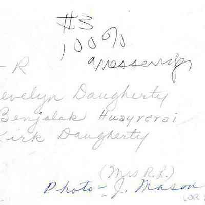 Photograph of Nevelyn Daugherty, Benjalak Huayrerai, Kirk Daugherty, Dec 1977Entry/Object ID