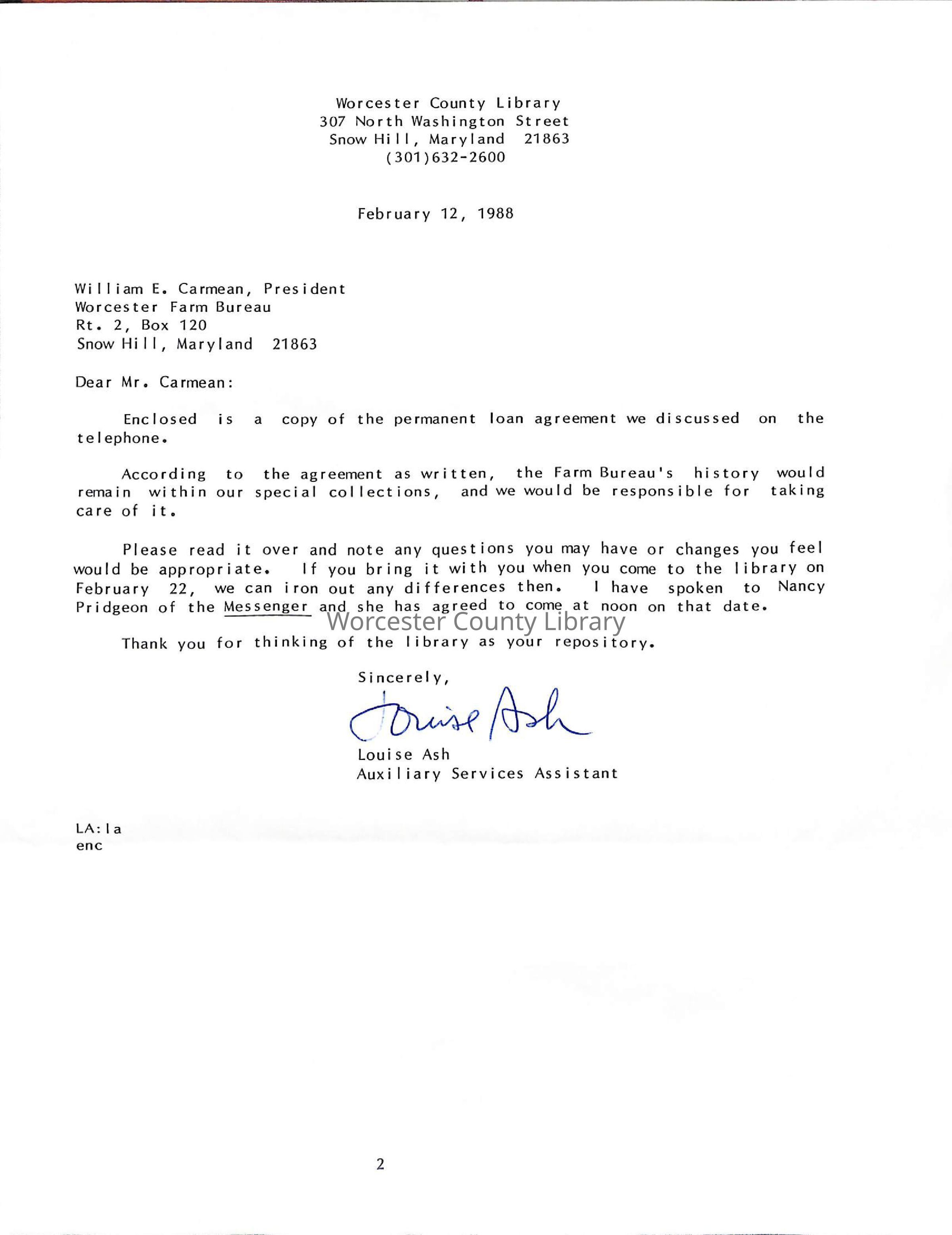 Worcester Farm Bureau, William Edgar Carmean, Worcester County Library, Louise Ash, Stewart Lee Wells, Nancy Pridgeon, Worcester County MessengerRelated Places