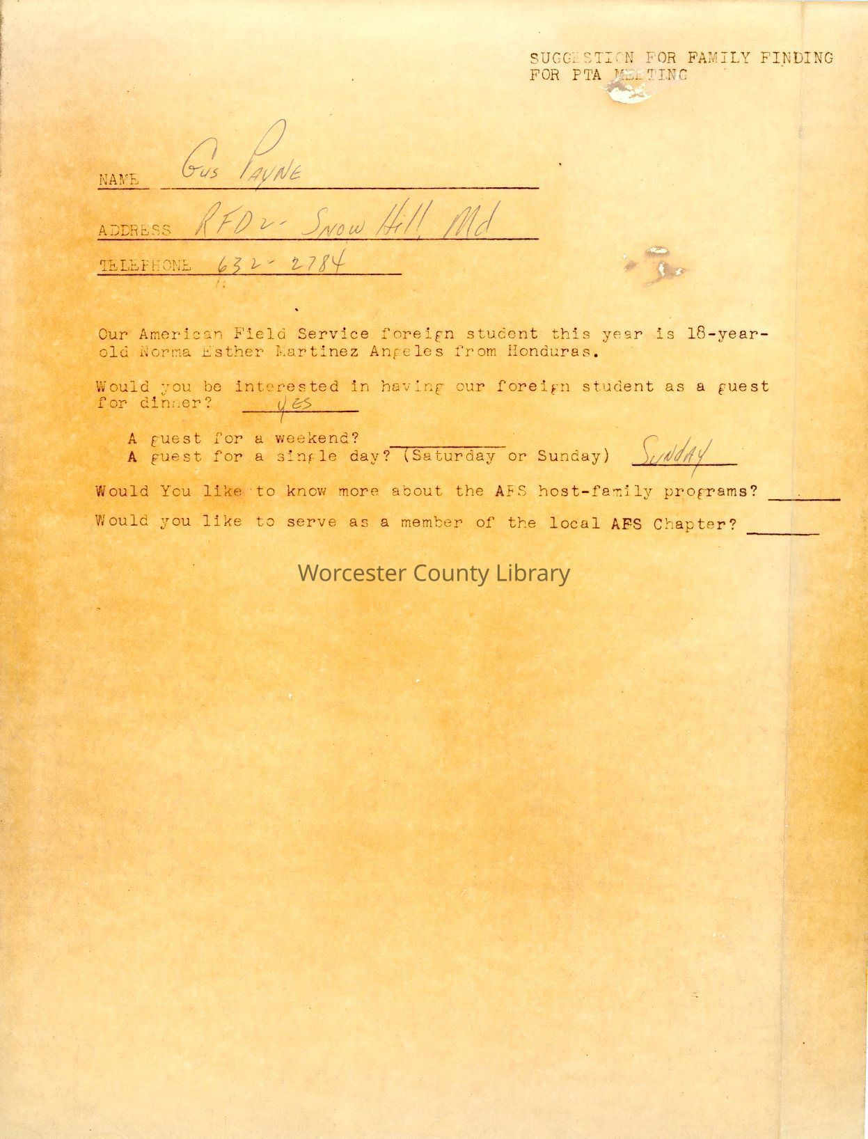 Norma Esther Martinez Angeles Cherrix, Augustus William Payne, Snow Hill High School, Snow Hill Parent-Teacher Association, American Field ServiceCreated By