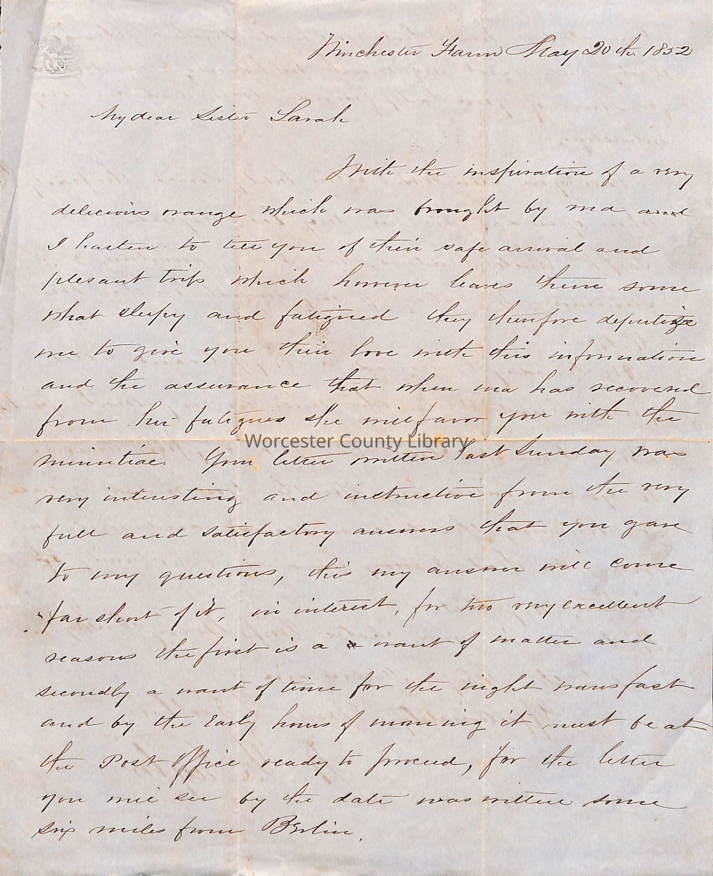 Correspondence, W. J. Taylor to Sister Sarah, 1852Entry/Object ID