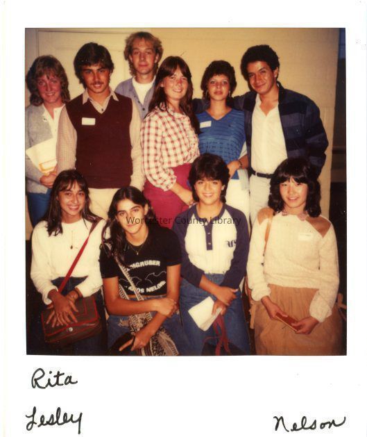 Photograph of AFS students, including Rita Barchetti, Nelson Hincatie, Leslie MurrayEntry/Object ID